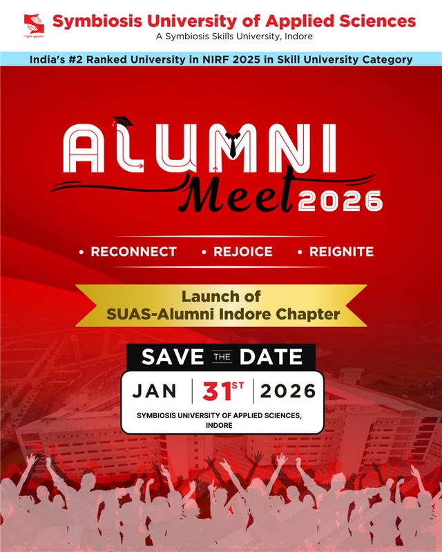 Symbiosis University of Applied Sciences (SUAS), Indore, is India’s pioneering skill-based university committed to experiential learning and industry integration. Ranked 2nd Best Skill University in India in the NIRF 2025 Rankings, SUAS takes pride in setting new benchmarks in skill education.